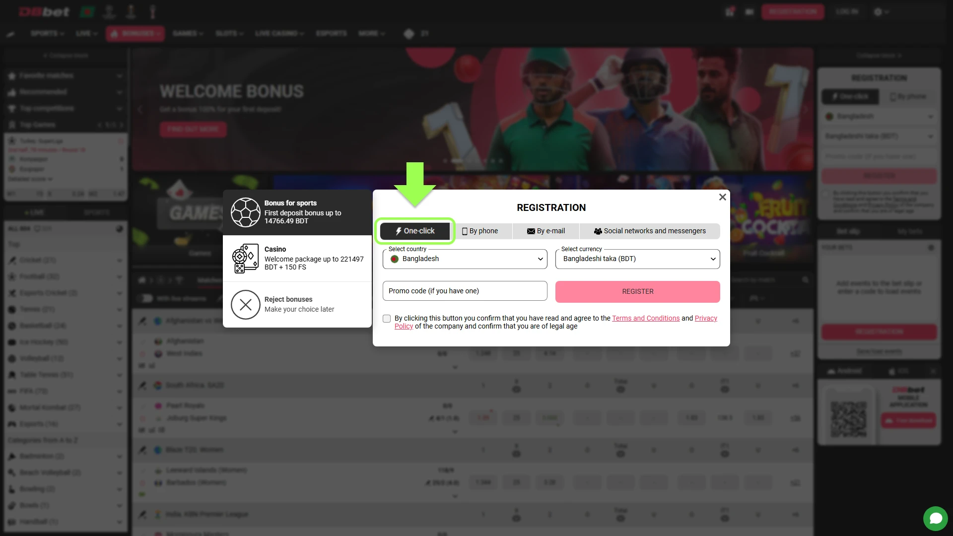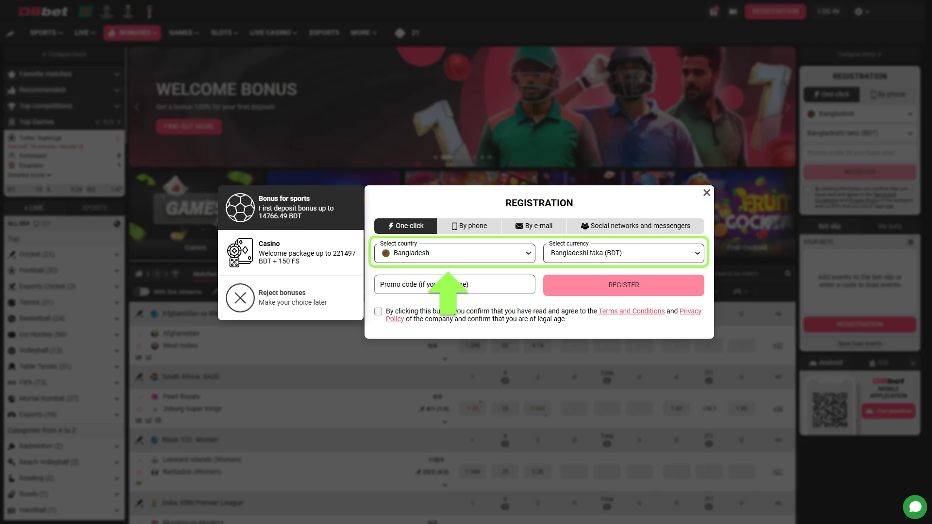 A promo code can increase standard bonus access during registration. Players can enter BONBDDB1 in the promo code field while signing up. The code activates current welcome offers under standard conditions.